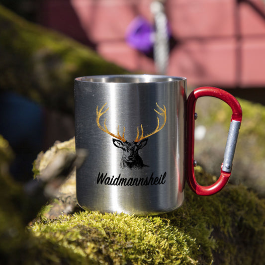 DekoAlm24 Tasse - Waidmannsheil - Edelstahl mit Karabiner