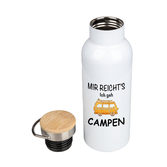 Edelstahl Trinkflasche 500ml mit Bambusdeckel | Mir Reicht's Ich geh CAMPEN