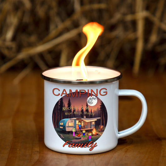 Terrassenfeuer | Schmelzlicht | AlmFeuer - Camping Family | personalisiert - Emaille - Outdoor-Kerze - DekoAlm24