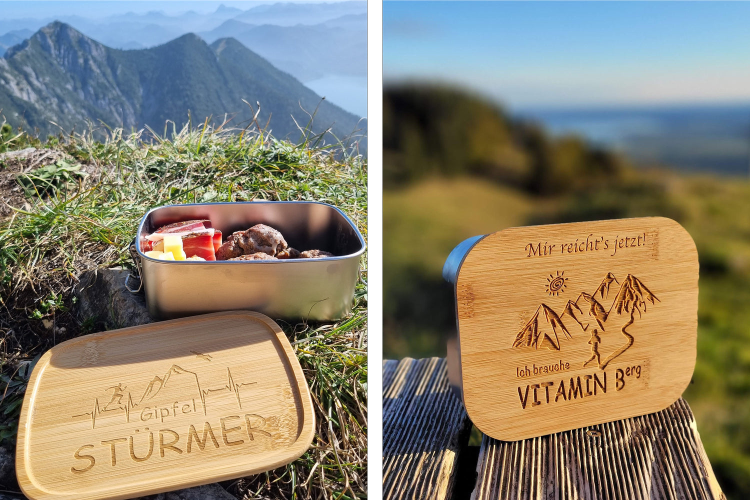 DekoAlm24 Brotdose | Lunchbox | Edelstahl mit Bambusdeckel | personalisiert - Gipfelstürmer