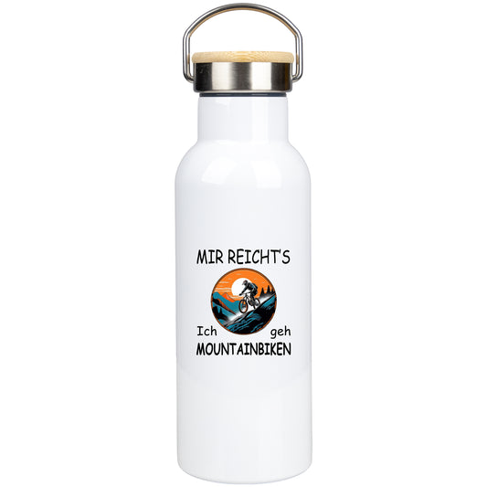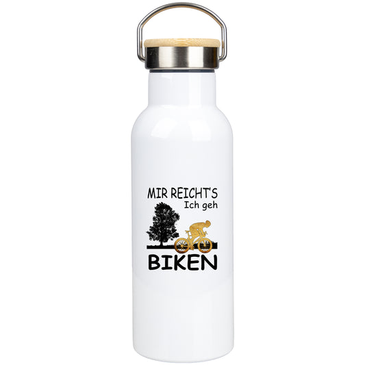 Edelstahl Trinkflasche 500ml mit Bambusdeckel | Mir reicht's - Ich geh Mountainbiken