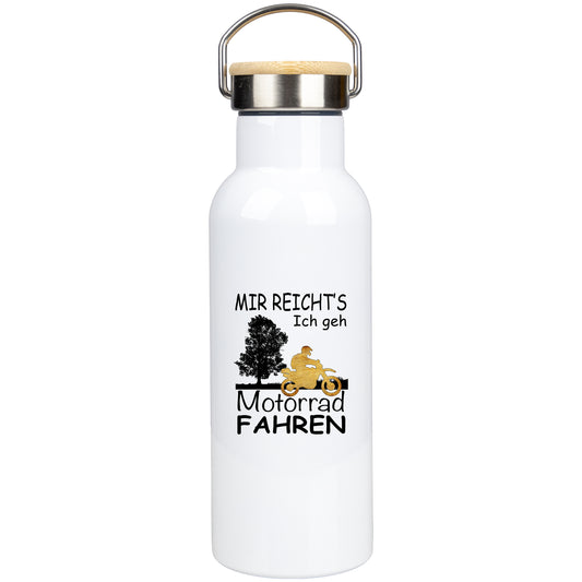 Edelstahl Trinkflasche 500ml mit Bambusdeckel | Mir Reicht's Ich geh Motorradfahren