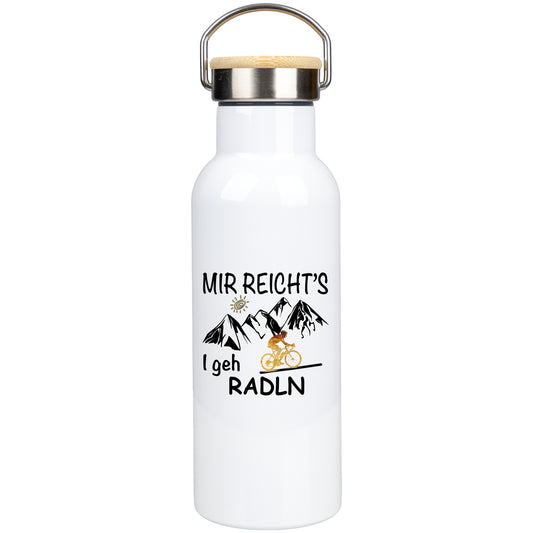 Edelstahl Trinkflasche 500ml mit Bambusdeckel | Mir Reicht's Ich geh Radln