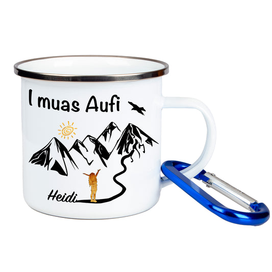 DekoAlm24 Tasse - I muas Aufi - personalisiert - Edelstahl mit Karabiner
