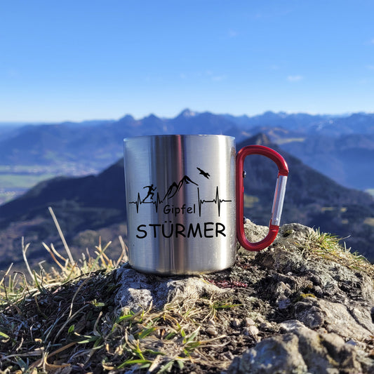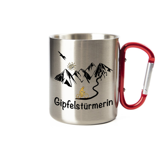 DekoAlm24 Tasse - Gipfelstürmer - Edelstahl mit Karabiner