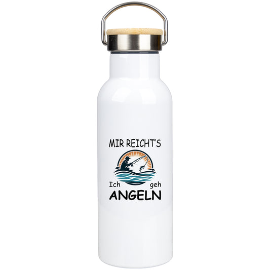 Edelstahl Trinkflasche 500ml mit Bambusdeckel | Mir Reicht's Ich geh Angeln