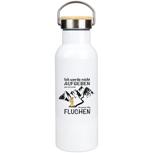 Edelstahl Trinkflasche 500ml mit Bambusdeckel | Ich werde nicht aufgeben, aber ich werden den ganzen Weg fluchen