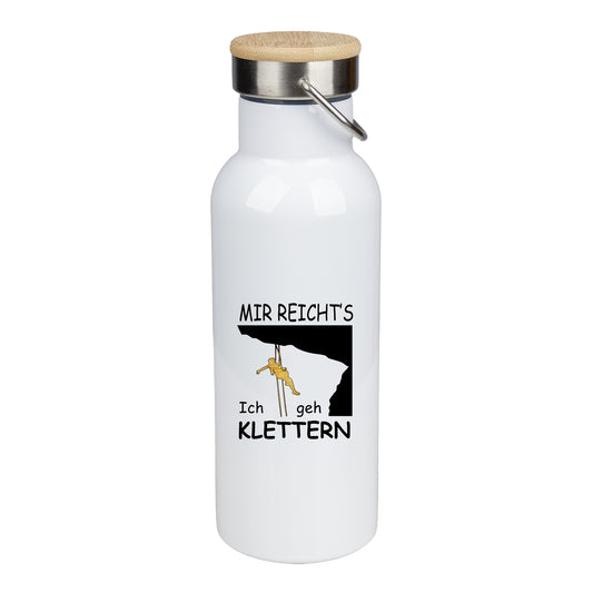 Edelstahl Trinkflasche 500ml mit Bambusdeckel | Mir Reicht's Ich geh Klettern - personalisierbar