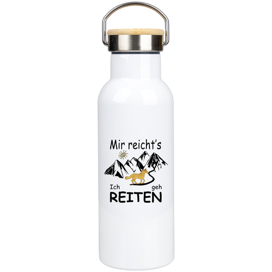 Edelstahl Trinkflasche 500ml mit Bambusdeckel | Mir Reicht's Ich geh Reiten