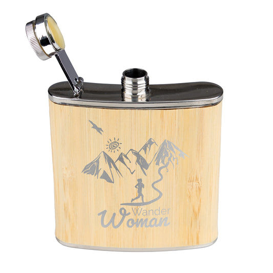 Flachmann Edelstahl Bambus - Wanderwoman - graviert