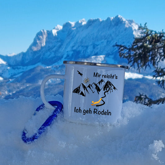 DekoAlm24 Tasse - Mir reicht's Ich geh Rodeln - Emaille (Silber)