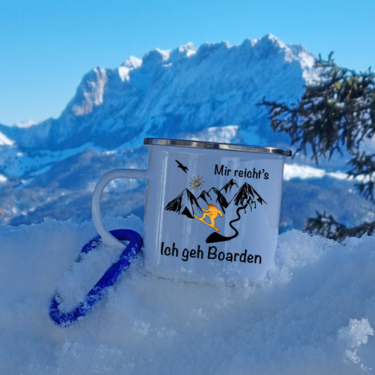 DekoAlm24 Tasse - Mir reicht's Ich geh Boarden - Emaille (Silber)