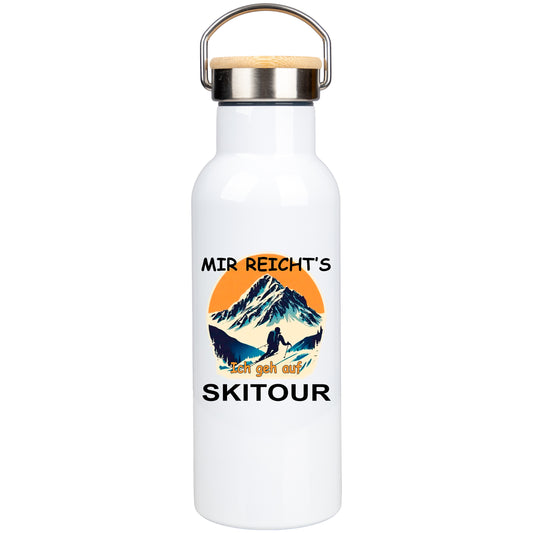 Edelstahl Trinkflasche 500ml mit Bambusdeckel | Mir Reicht's Ich geh auf Skitour