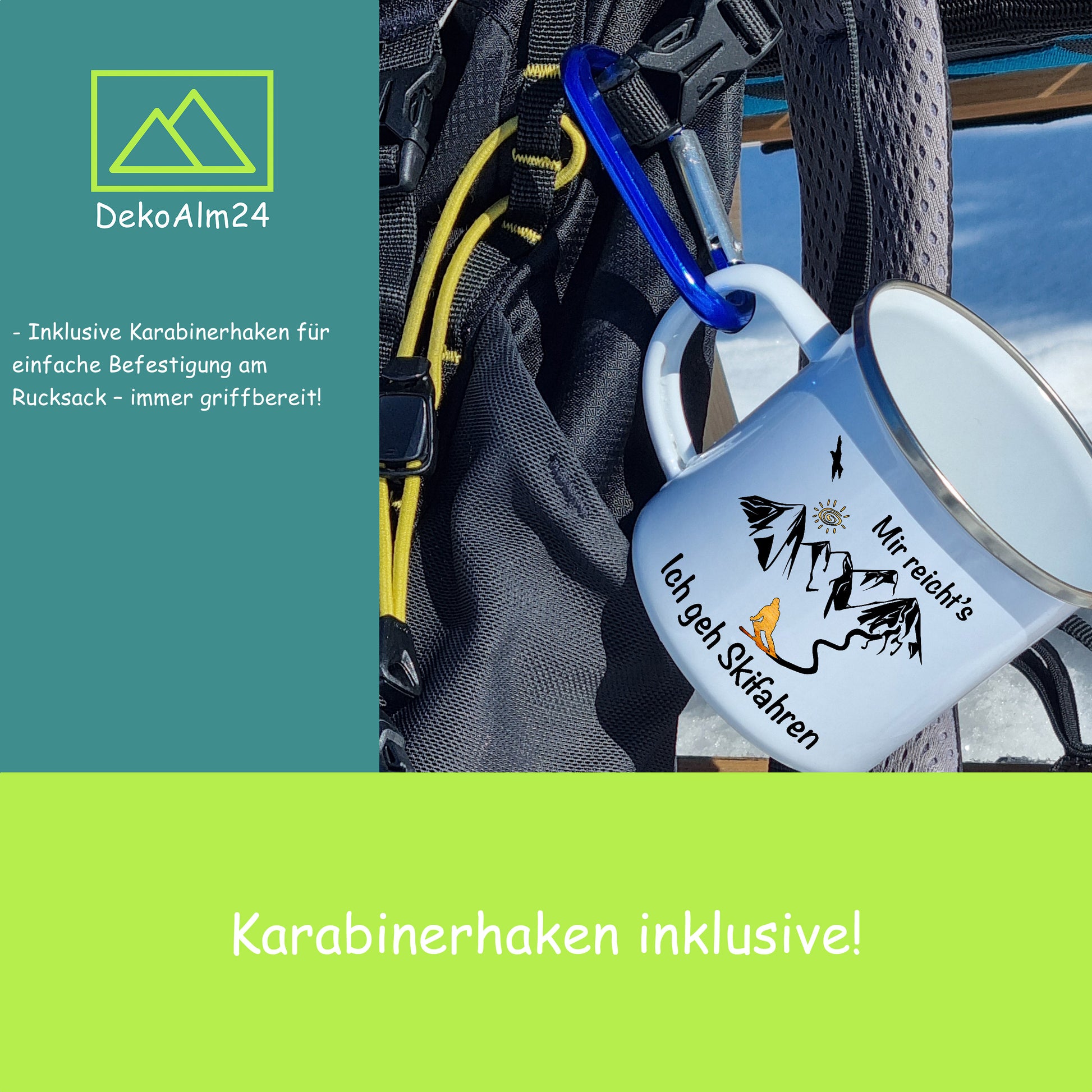 Bereite dich darauf vor, die Natur in vollen Zügen zu genießen mit unserer exklusiven Emaille-Tasse, speziell für Outdoor-Enthusiasten, Bergsteiger und Wanderer entworfen. Jede Tasse ist ein Kunstwerk mit einem einzigartigen Motiv, das die Abenteuerlust in dir weckt. Und als besonderes Extra kommt sie mit einem praktischen Karabinerhaken, damit du sie mühelos an deinem Rucksack befestigen kannst.